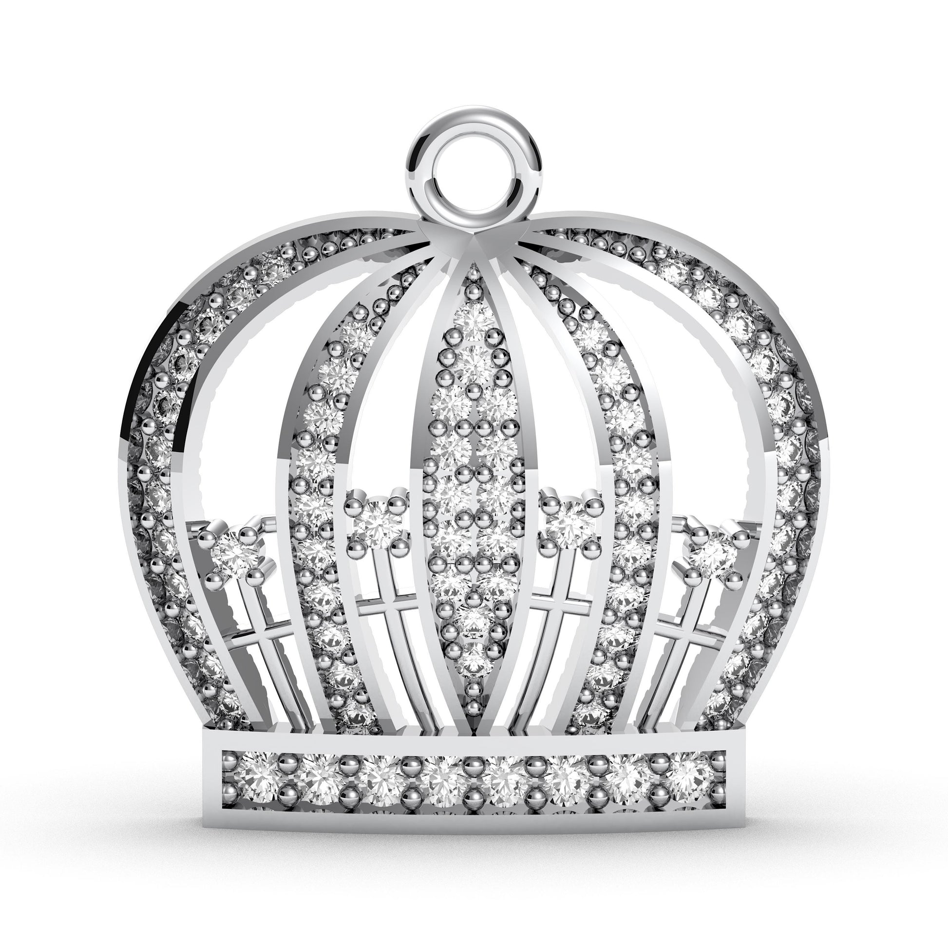 Regally designed and completely ""iced out,"" this pendant is crafted from solid 925 sterling silver and covered in brilliant, pavΓ©-set cubic zirconia stones. Every surface, from the base to the elegant arches, catches the light for an unforgettable, luxurious shine that commands attention.