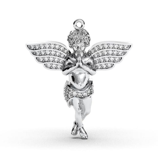 👼 Umut, Rehberlik ve Koruma: Dua Eden Melek Kolye Detaylı işlenmiş koruyucu melek figürü, zirkon taşların parıltısıyla birleşir. 14K altın yapısı ve kanatlı formu, her kombinle uyumlu zarif bir görünüm sağlar.