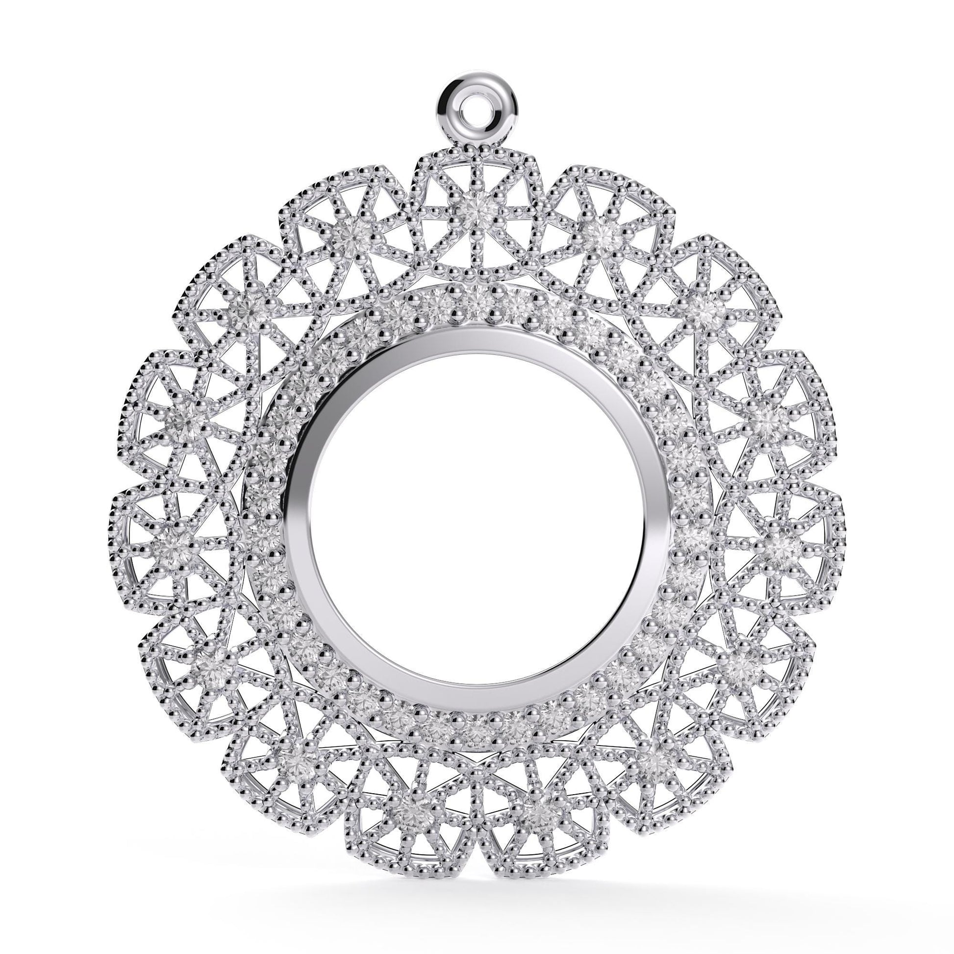 - Design: A large, circular pendant featuring a highly detailed, openwork mandala or snowflake pattern with a central frame.