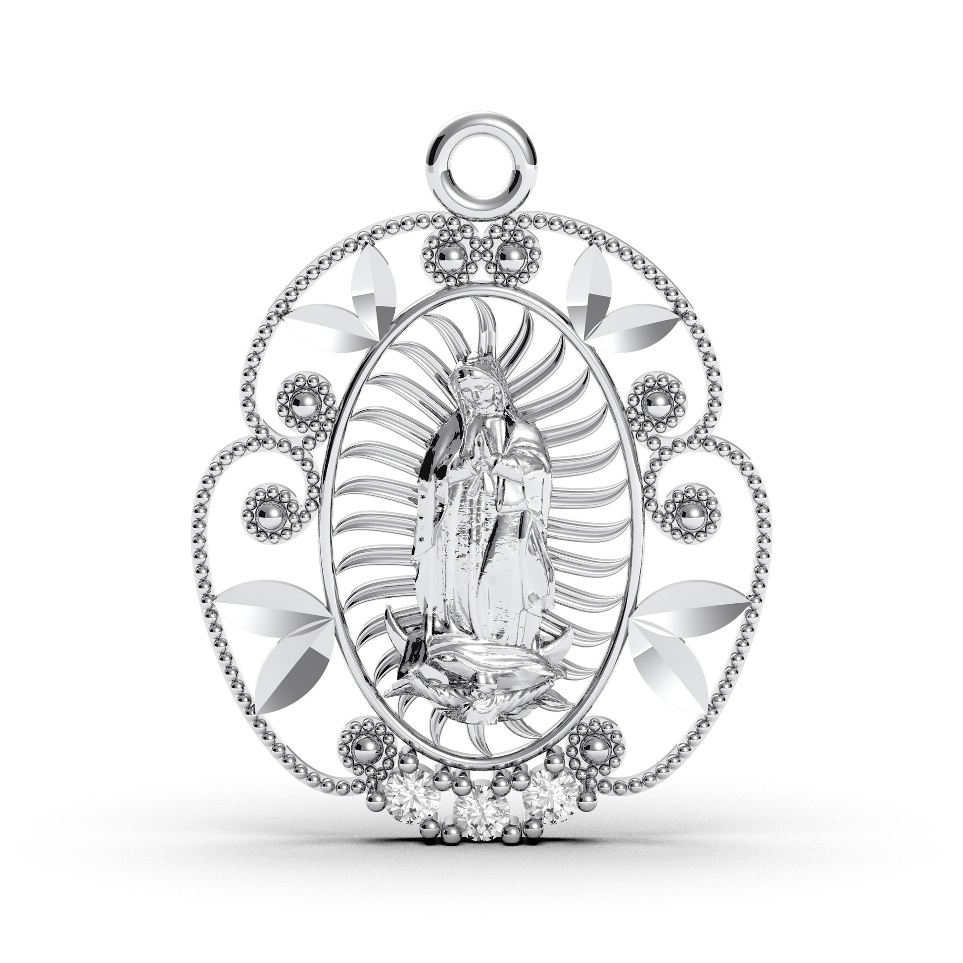 - Design: An oval medallion featuring Our Lady of Guadalupe, framed by decorative, openwork filigree.