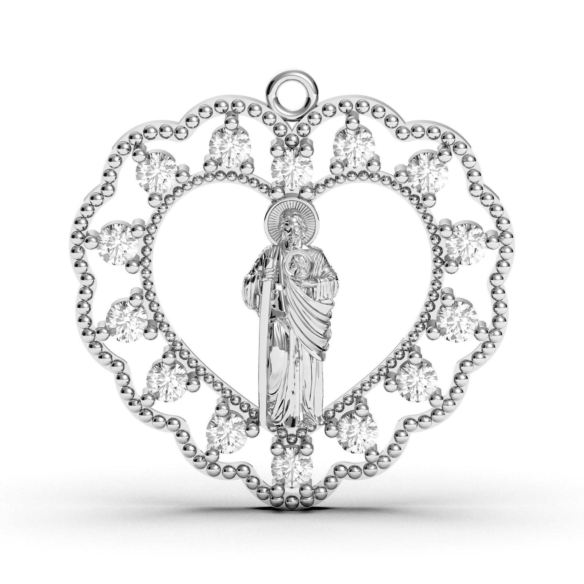 Sterling Silver St. Jude Heart Necklace: CZ Diamond Catholic Pendant