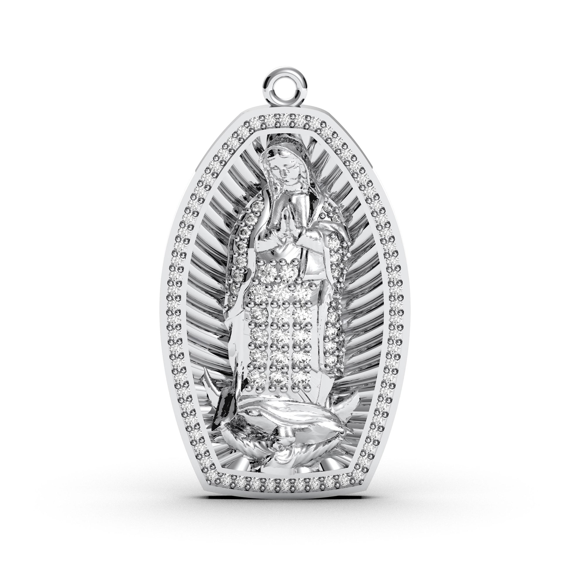 This sterling silver oval pendant features a beautifully detailed Virgin Mary figure, adorned with shimmering cubic zirconia stones and framed in an elegant border. A timeless symbol of faith, devotion, and protection, making it a meaningful gift or personal keepsake.